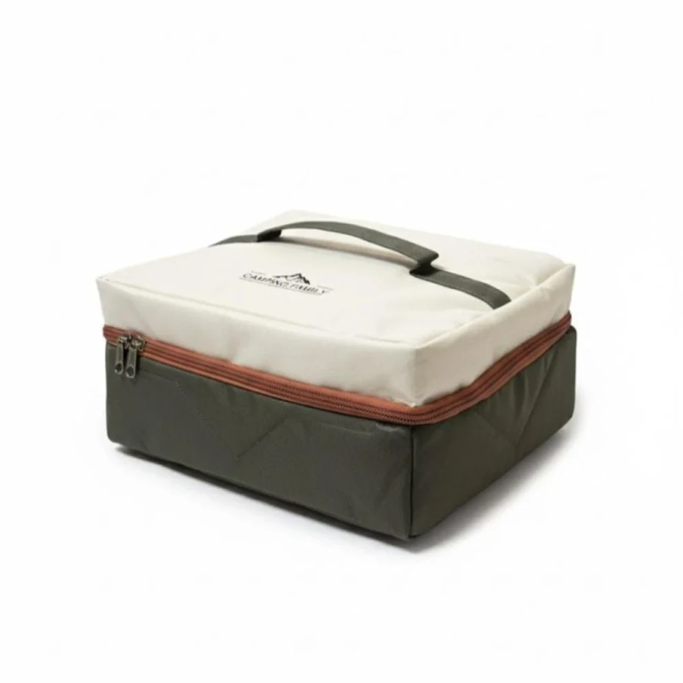 • حقيبة تخزين معزولة: حقيبة أنيقة ومتينة بشعار "CAMPING FAMILY"، مصممة للحفاظ على محتويات الطقم آمنة ومنظمة، مع عزل حراري لحماية الأدوات.