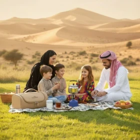 يضم الطقم إبريقًا معدنيًا عالي الجودة، مع موقد غاز صغير (مصدر النار) يتيح لك غلي الماء وتحضير الشاي بسهولة أينما كنت، دون الحاجة لأي تجهيزات إضافية. كما يحتوي على عبوات تخزين للسكر والشاي، وأكواب عملية، وميزان صغير لتحضير المشروبات بدقة، بالإضافة لملحقات تساعدك على الاستمتاع بتجربة ضيافة كاملة في الهواء الطلق.
