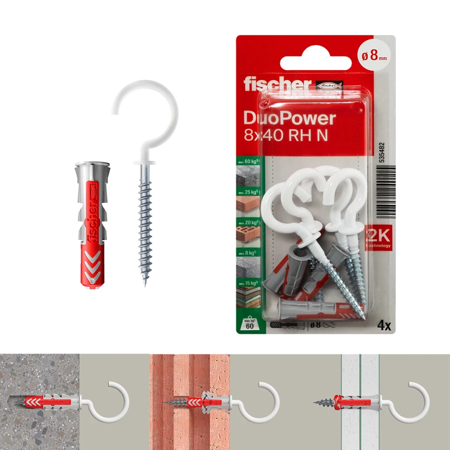 قابس فيشر ديوباور 8 × 40 RH N K NV + خطاف دائري 4 قطع