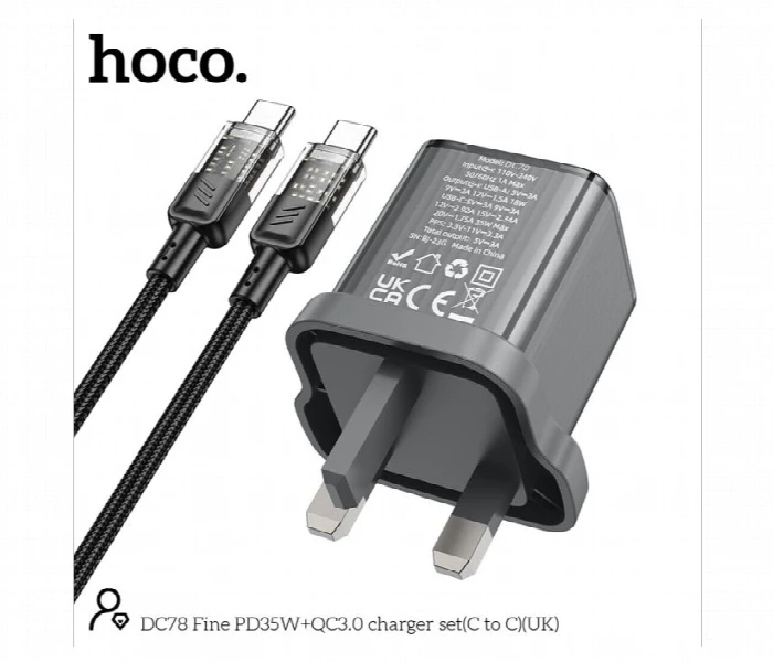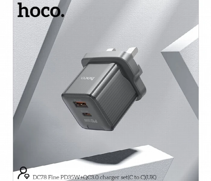 شاحن حائط HOCO DC78 – ثنائي المنافذ PD35W + QC3.0 مع كابل Type‑C إلى Type‑C