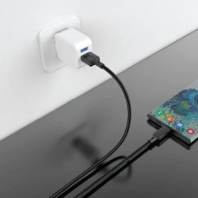 📱 موصل USB-A إلى Type-C يجعل الكابل متوافقًا مع معظم الهواتف الذكية الحديثة، الأجهزة اللوحية والباور بانك.