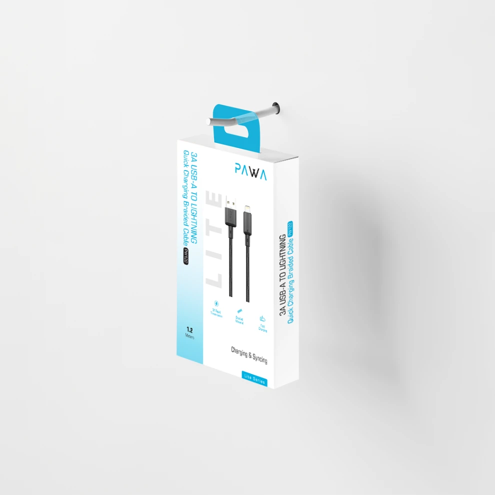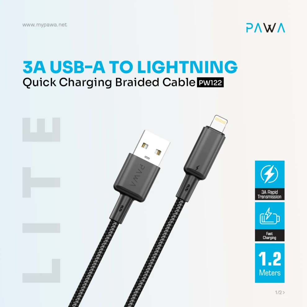 كابل شحن سريع مضفر PAWA PW122 – USB-A إلى Lightning (3 A)