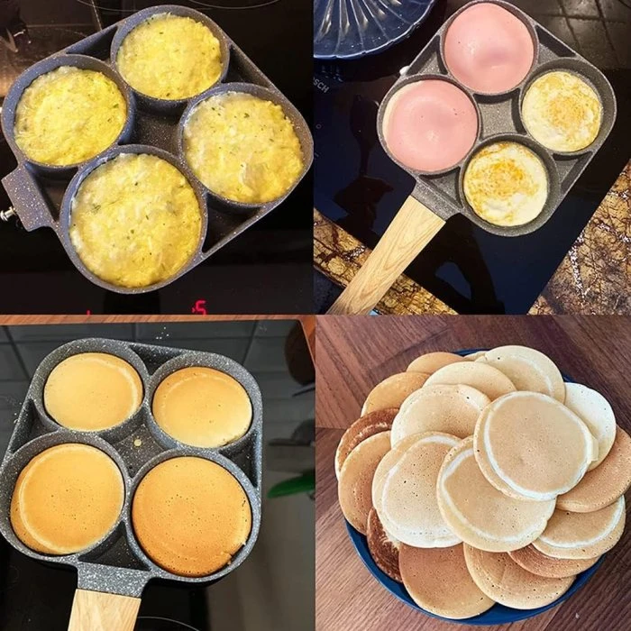 استمتع بتحضير وجبات إفطار لذيذة وسريعة مع صينية الأومليت متعددة الاستخدامات بـ 4 فتحات. صُممت هذه الصينية لتسهّل عليك طهي عدة أنواع من الطعام في نفس الوقت مثل البيض المقلي، الفطائر، البرجر أو حتى البان كيك، مما يوفر الوقت والجهد في المطبخ.