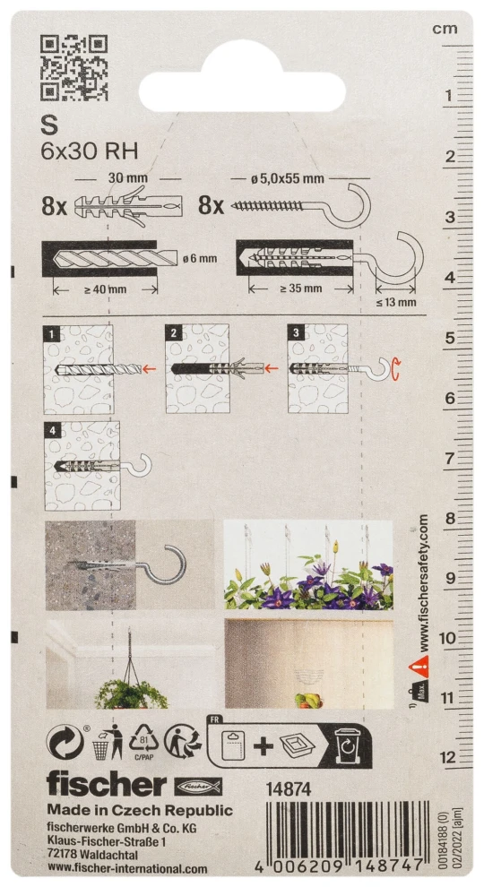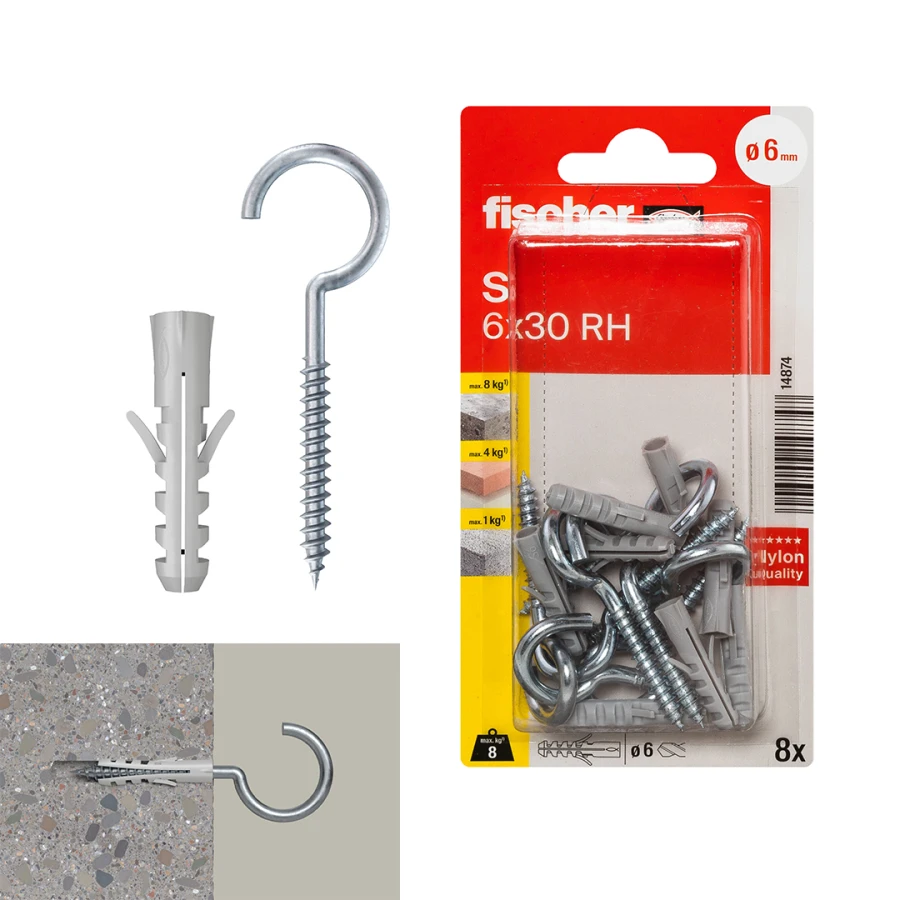 Fischer BLISTER S-6 HCK Plug + Round Hook 8pcs