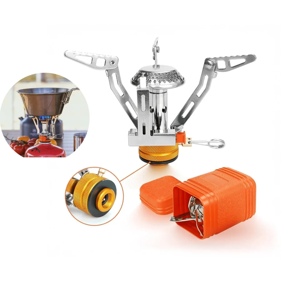 Portable camping stoveMaterial: Aluminum alloy, stainless steel, copperIgnition system: Piezoelectric ignition systemApplicable scenarios: camping, picnics, RV life and other outdoor scenariosPrecautions: After the product is installed, pay attention to whether there is any leakage; do not use oversized cooking utensils to prevent the gas tank from heating, and always pay attention to the gas tank temperature